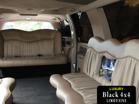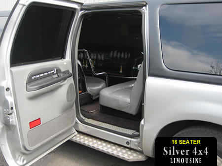 Our range of 4x4 limousines include Ford Excursions and Lincoln Navigators with seating for 12-14 passengers (depending on vehicle). All are equipped with the great features you would expect from us including leather seating throughout, TV, DVD, CD stereo, great speaker system and more!