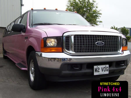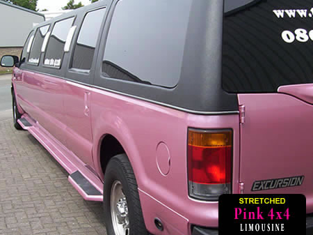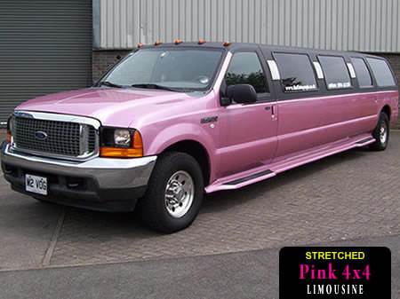 We have pink limos for hire in two styles - the second design is the 'Hummer Limo' style 4x4. Superstretched for upto 16 passengers with plenty of great features onboard. Bring your favourite tunes along for the CD stereo and surround speakers, sit back and pour a glass of bubbly and head out on the town!
