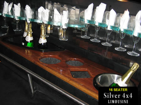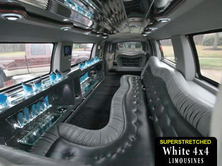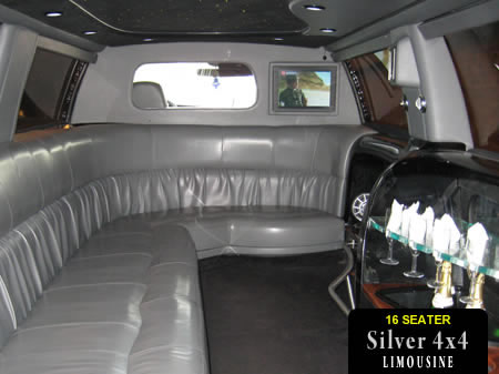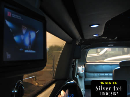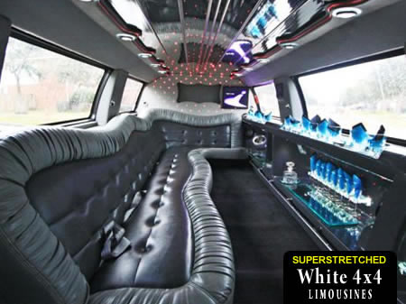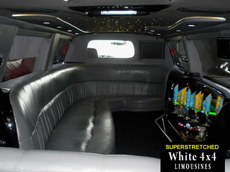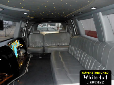 New to our limo hire fleet is this fantastic 'Hummer Limo' style Ford Excursion. Supersized in length with 16 seats, this car includes plenty of great features including TV, DVD, fibre optic lighting, leather seats and more!