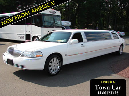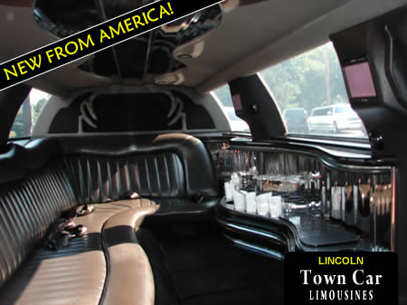 Arguably the most popular type of limousine requested, the Lincoln Town Car design is most commonly associated with weddings and proms, and the type of stretched car that celebrities are seen climbing out of! Licensed for upto 8 passengers with great fibre optic lighting inside, full onboard entertainment (TV, DVD, CD etc), climate control, tinted windows and bar area!